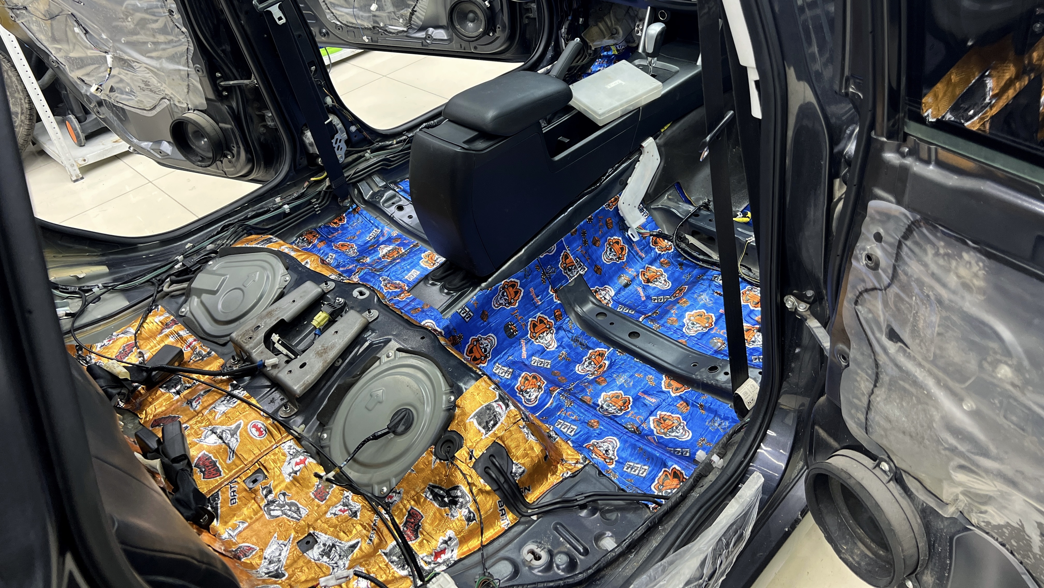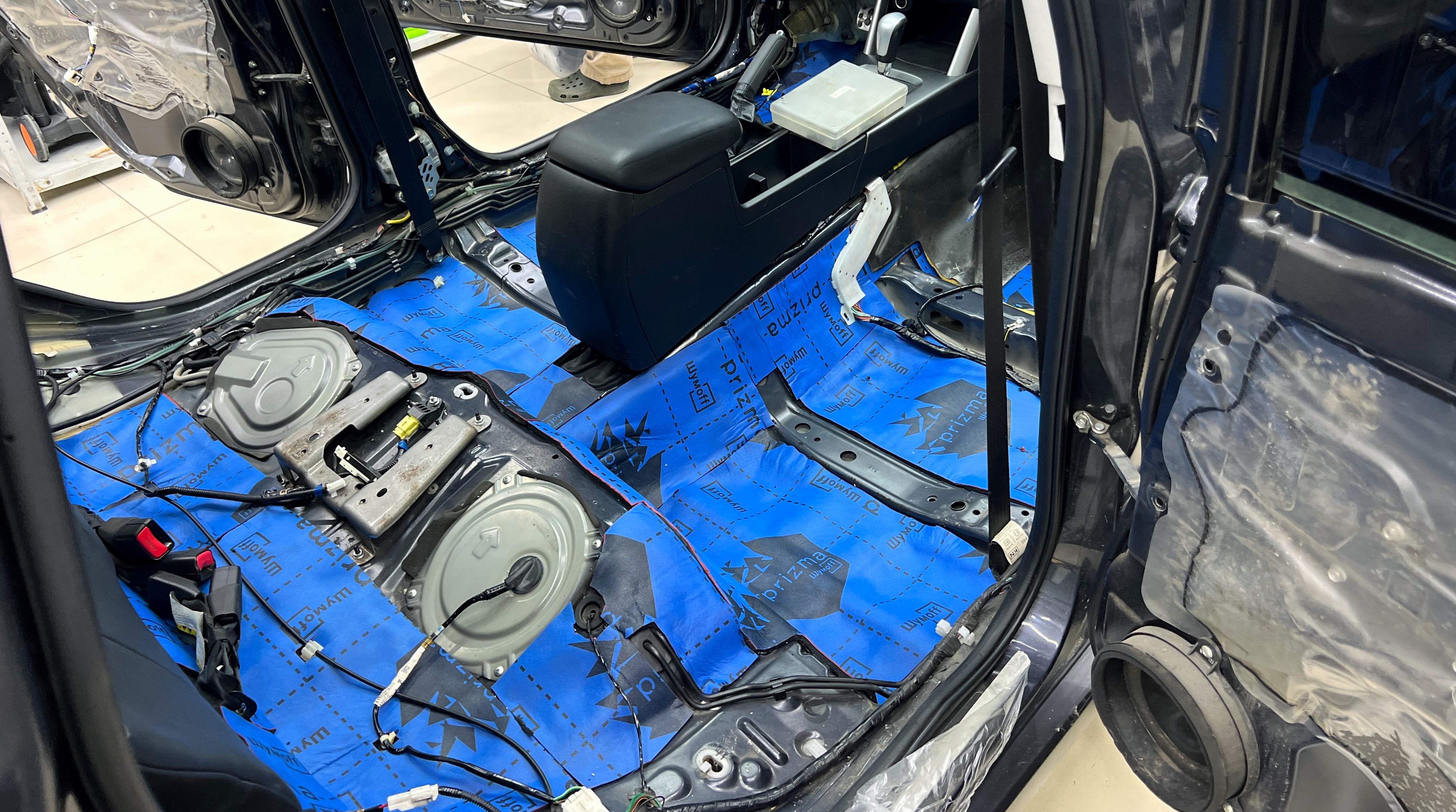 Шумоизоляция пола Субару Форестер Максимально вверх к моторной перегородке и до заднего сиденья клеим Шумофф Prizma 6.