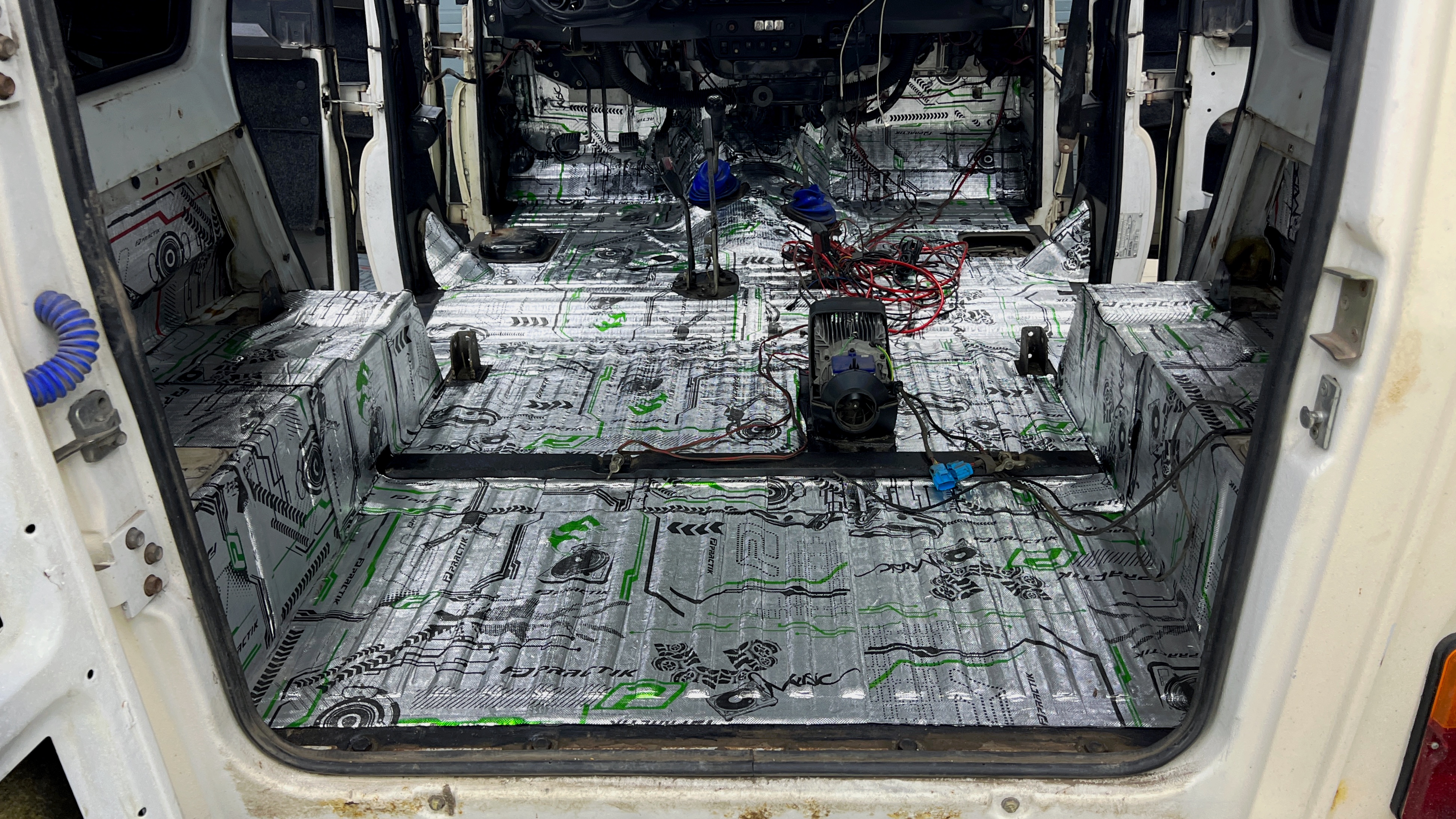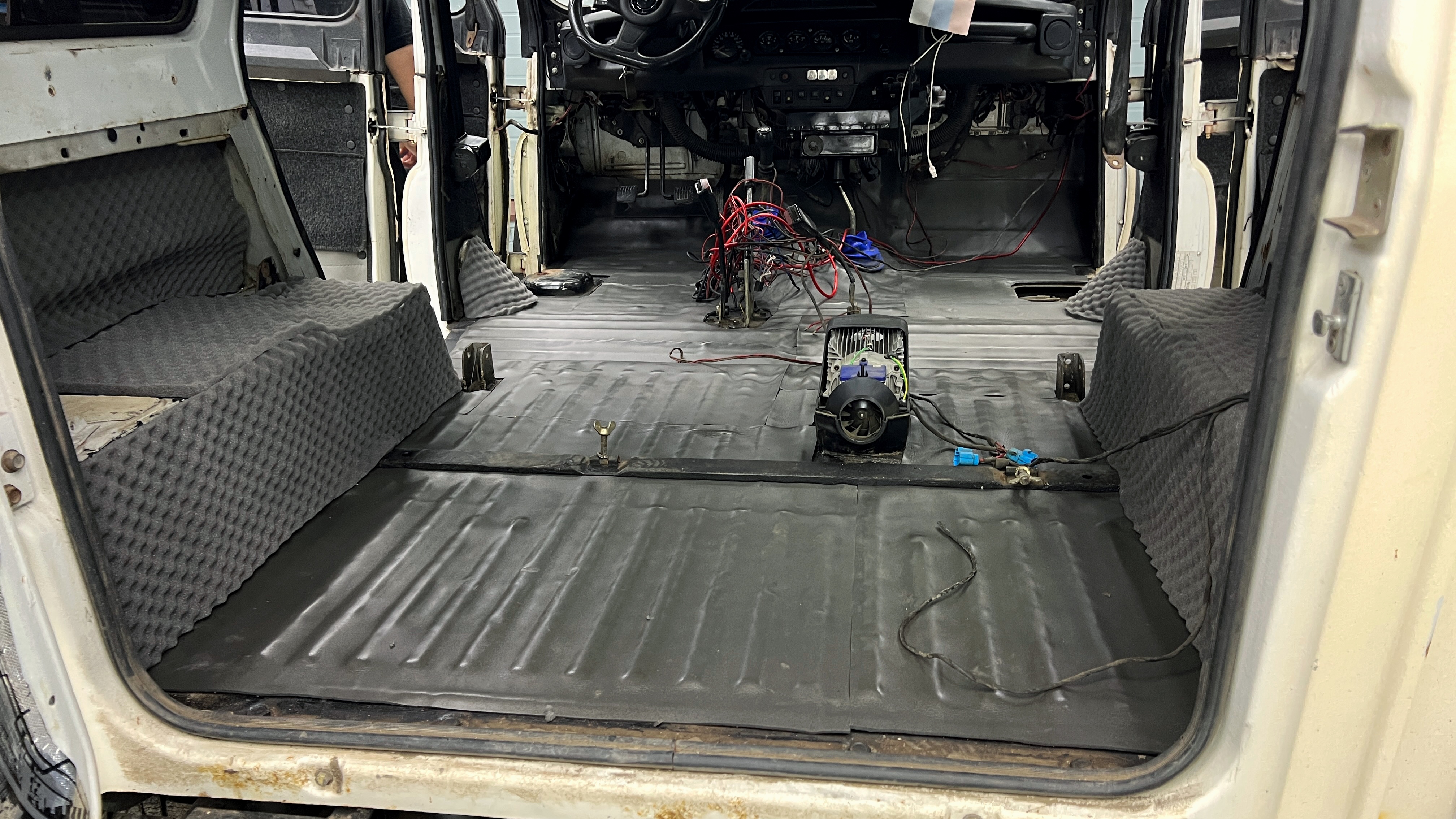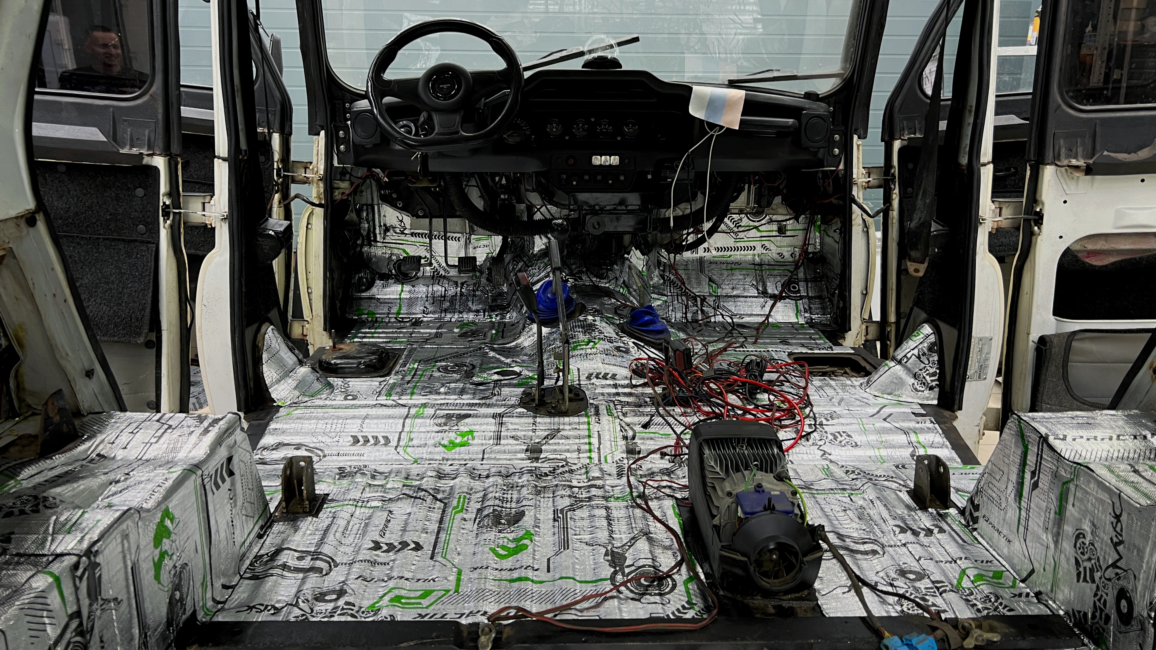 Виброизоляция пола УАЗ Хантер Виброизоляция пола позволит нам значительно снизить вибрацию от дороги, увеличить целостность и сбитость автомобиля, а также уменьшить чувствительность от самой структуры дороги.