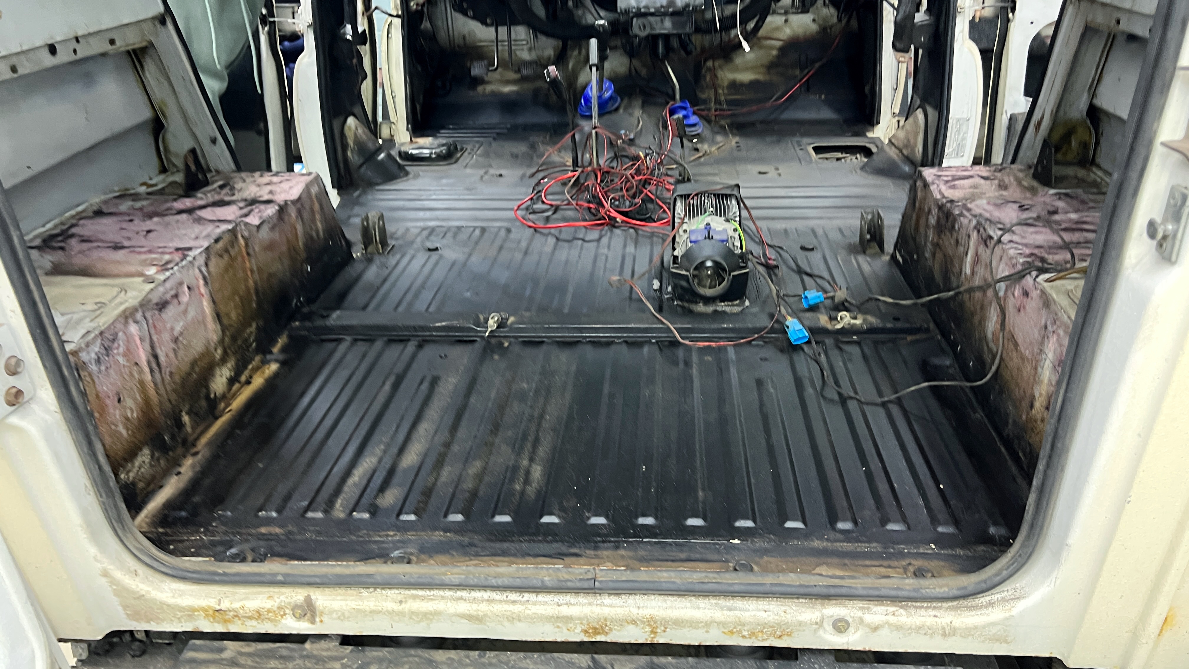 Приступаем к разборке остальной части салона, откручиваем и вынимаем сиденья, центральную консоль и ковер.